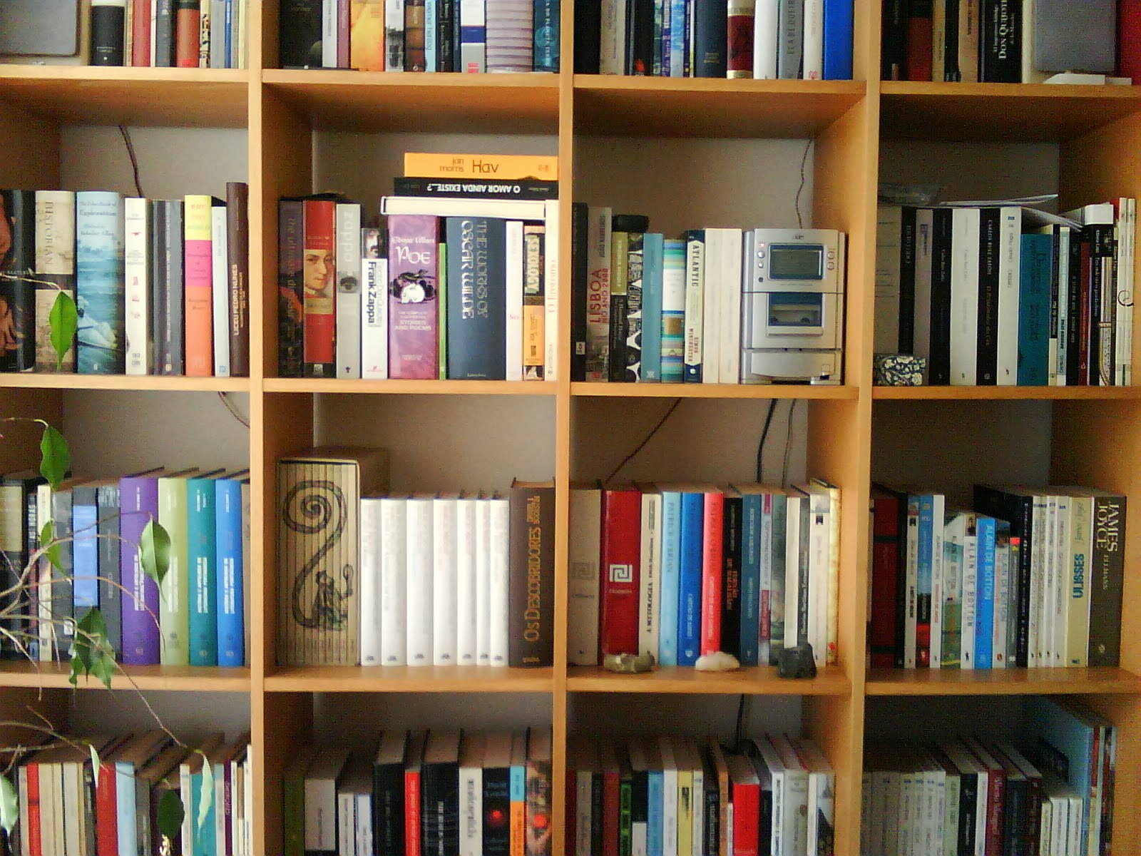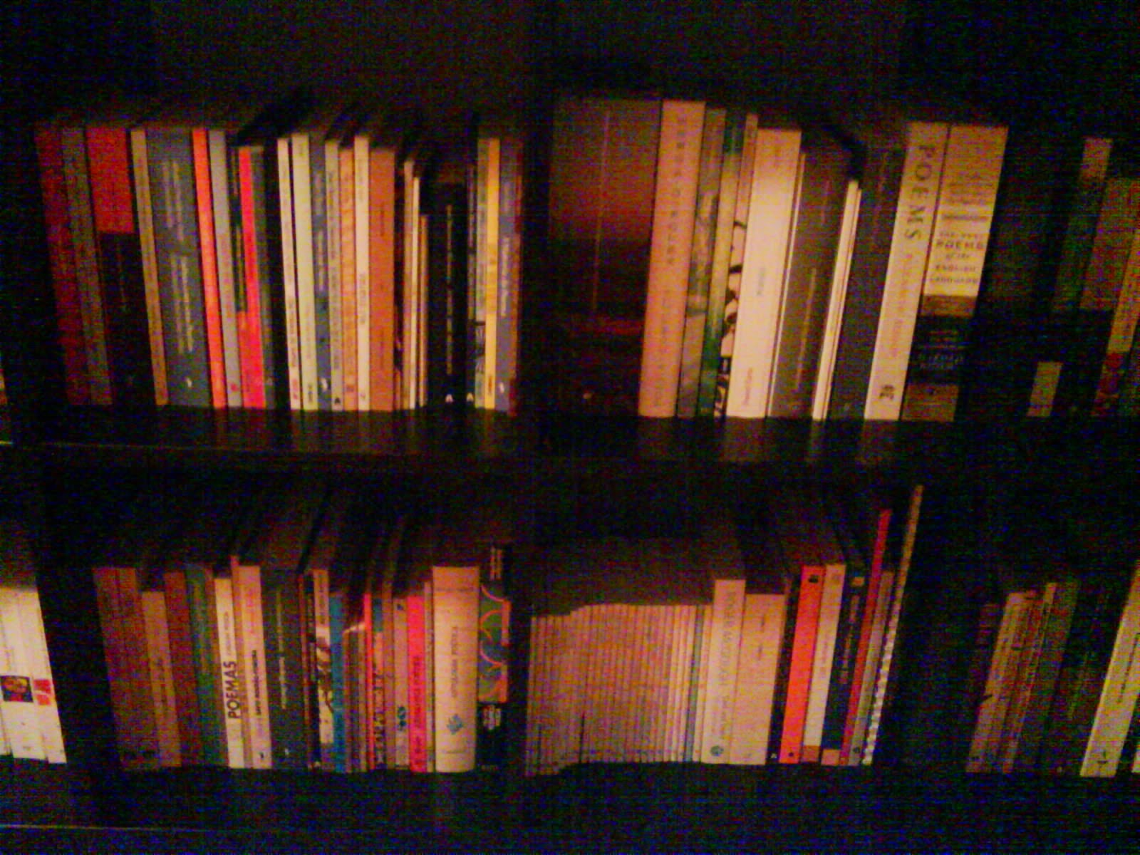 o realizador john waters tem uma frase brilhante: “if you go home with somebody, and they don’t have books, don’t fuck them!”. gostaria que acreditassem que a disseminação de livros cá em casa não se destina a promover qualquer tipo de promiscuidade lasciva e independente da assoalhada pontual... mas confesso não saber explicar por que razão os livros não estão todos juntos. a verdade é que há estantes com livros em quase todas as divisões e nos corredores também. e pensei nelas a auto-retratarem-se. tentei ainda que esse facto ajudasse de alguma forma a organizar este pequeno acervo – sem sucesso algum. fui percebendo que os livros têm um percurso próprio: podia jurar que os borges estavam todos ali e aparece-me uma edição do “ficciones” no meio dos steinbeck. como? quando? não sei. um amigo meu, arquétipo da ironia com piada, diz que gosta de ver os meus livros assim espalhados, porque se nota menos que muitos estão ainda por colorir... mas a meu favor tenho (perdoa-me o’neill) um facto: esta última fotografia mostra uma estante do meu quarto, que serve de mesa de cabeceira – e onde apenas há poesia. gosto de pensar que se a cama pudesse ser uma extensão daquelas prateleiras, talvez nos sonhos se inscrevessem poemas.